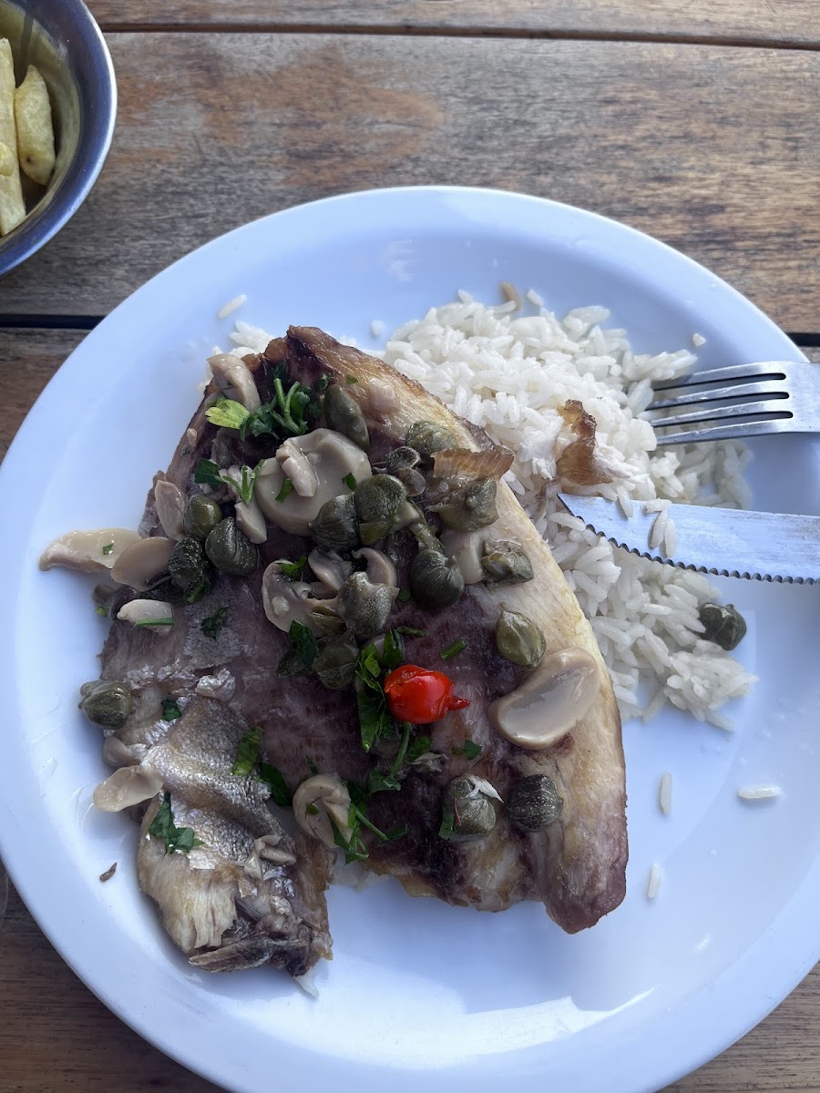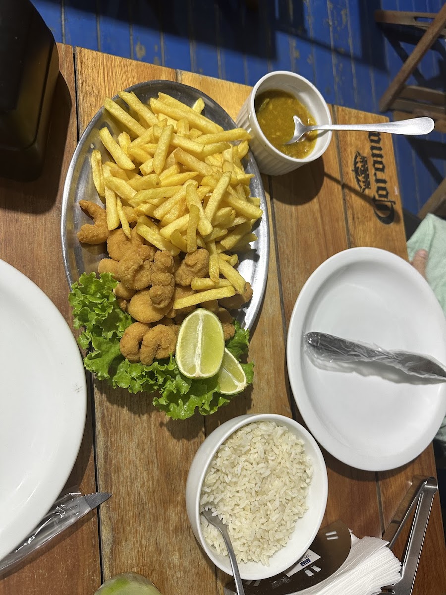 Fui super bem atendido pelo Thiago, me convidou para deixar as coisas ali na beira mar mesmo para dar um mergulho, aproveitei para pegar algumas bebidas, tudo nota 10! Super honestos quanto a fritura (perguntei se usavam a mesma gordura do camarão para as fritas e ele foi conferir e disse que sim, mas para os alérgicos bastava pedir antes que solicitavam para a cozinha). Show demais. Excelente drinks.